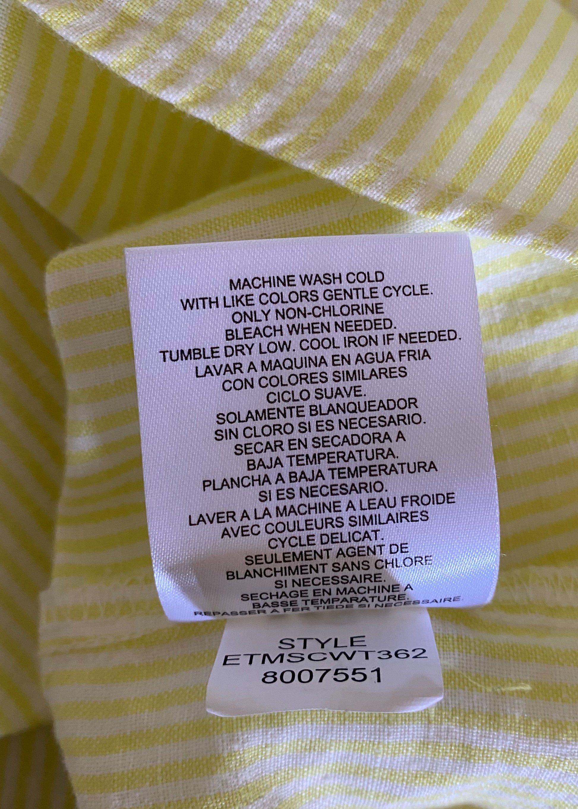 All garments that are machine washable have been washed in Aspen Clean unscented laundry detergent and either air dried or dried in the dryer (we do not use dryer sheets) depending on each garments care instructions. Afterwards they are steamed with a professional garment steamer.